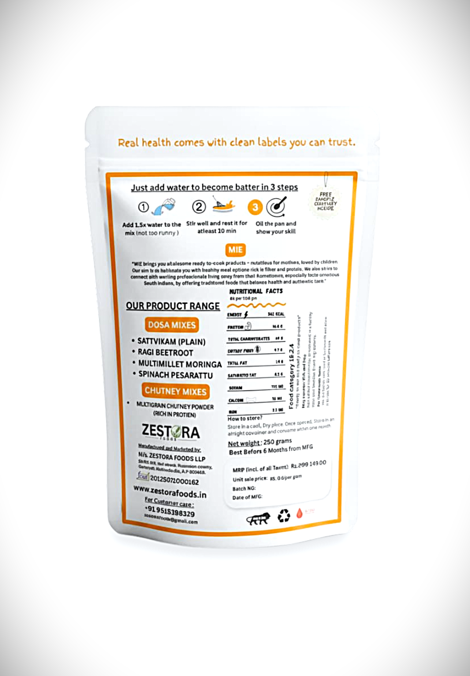 Made with a thoughtful blend of urad dal, rice, jowar, Bengal gram, suji, and mild spices, this mix offers a perfect balance of taste and health. Jowar adds essential fiber and minerals, while carrot brings vitamin A and a subtle earthy sweetness — making it ideal for both kids and adults.